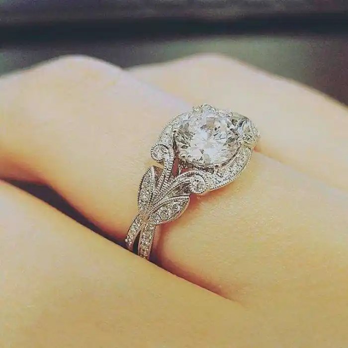 The Opal Fleur ring features a delicate floral design with an iridescent opal stone, offering a blend of natural beauty and elegance.
