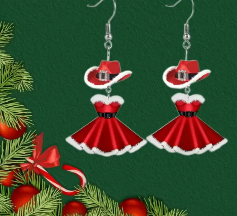 Introducing our sexy New Year earrings, featuring a playful red dress of the Snow Maiden paired with a delicate hat trimmed in white fur—perfect for adding a touch of festive allure to your holiday look